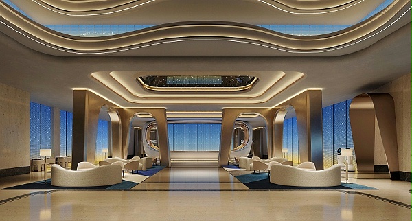 躺空间设计分为两块,动躺萤火水廊、潮人阁、游轮躺等空间,可以体验科技与艺术的融合。静躺是为顾客提供放松、小憩或过夜的舒适场所。以半封闭或独立的小隔间为主,保障私密性。搭配柔和的暖色调灯光营造多元化松弛感,打造多种风格元素的休憩空间。